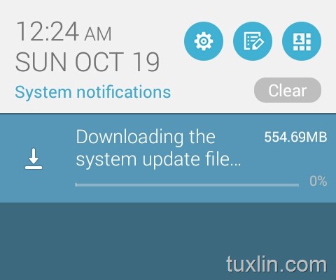 Nyaris selesai sob downloadnya 😀 Sebenernya sedikit nyesek karna pas mencapai 70%, mendadak jaringan drop dan dowload update Android 4.4 KitKat dimulai sejak semula. Sebagai akibat Jam 2 pagi baru selesai nih downloadnya